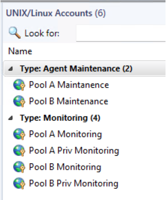 Select the Pool A Agent Maintenance and Monitoring accounts from the drop down menu.