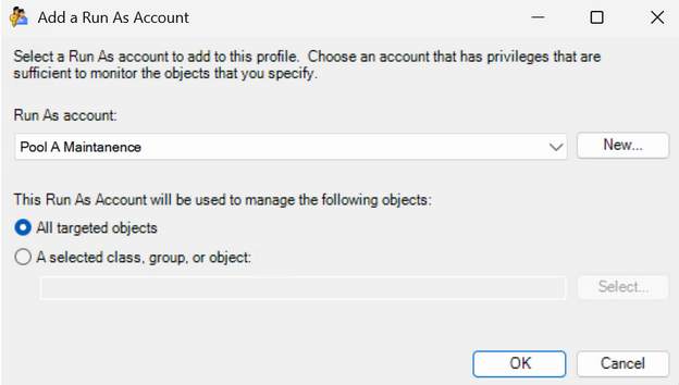 From the Run As account drop down select the Pool B Agent Maintenance and Monitoring accounts